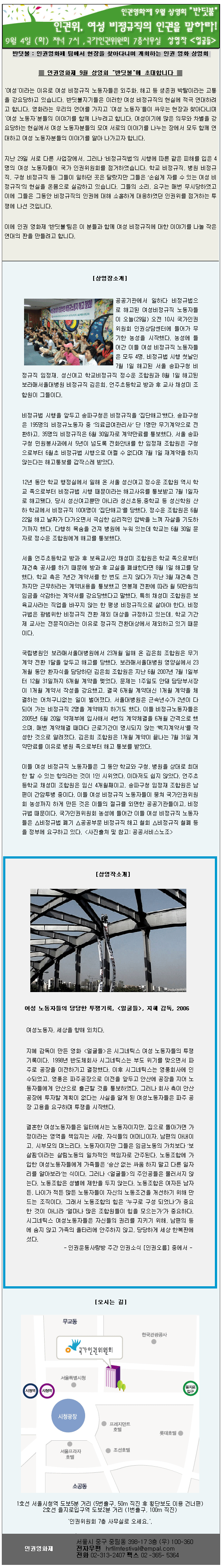 <ÀαǿµÈÁ¦9¿ù»ó¿µÈ¸¹Ýµ÷ºÒ> ÀαÇÀ§, ¿©¼ººñÁ¤±ÔÁ÷ÀÇ ÀαÇÀ» ¸»Ç϶ó!!