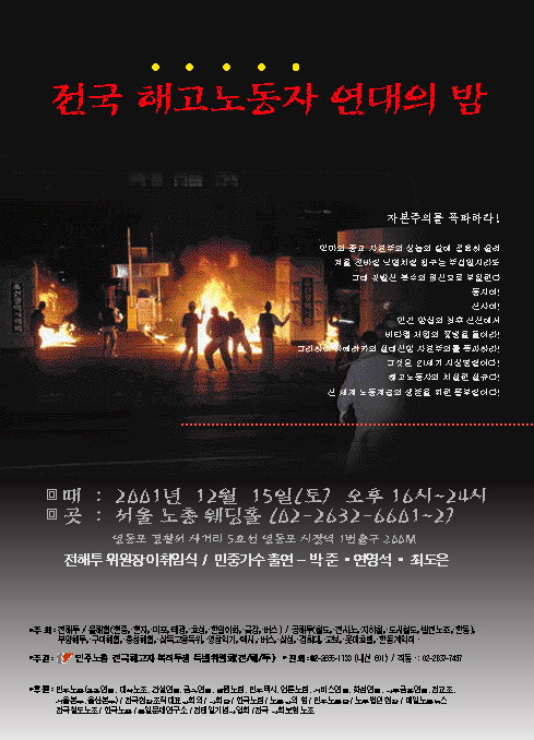 '2001 Àü±¹ ÇØ°í³ëµ¿ÀÚ ¿¬´ëÀÇ ¹ã'°³ÃÖ